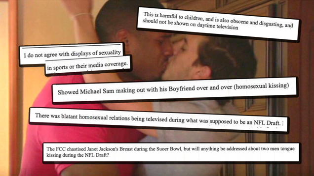 It was a moment in the lives of Michael Sam and his boyfriend, Vito Cammisano.  Sam is the first openly-gay collegiate football player, from the University of Missouri, and was the Defensive Player of the Year in the SouthEastern Conference.  When Sam was drafted by the St. Louis Rams in the 7th round of the NFL Draft, cameras captured the moment/announcement/phone call from the Rams on TV.  In their excitement and happiness, Sam and Cammisano kissed… ON THE MOUTH.