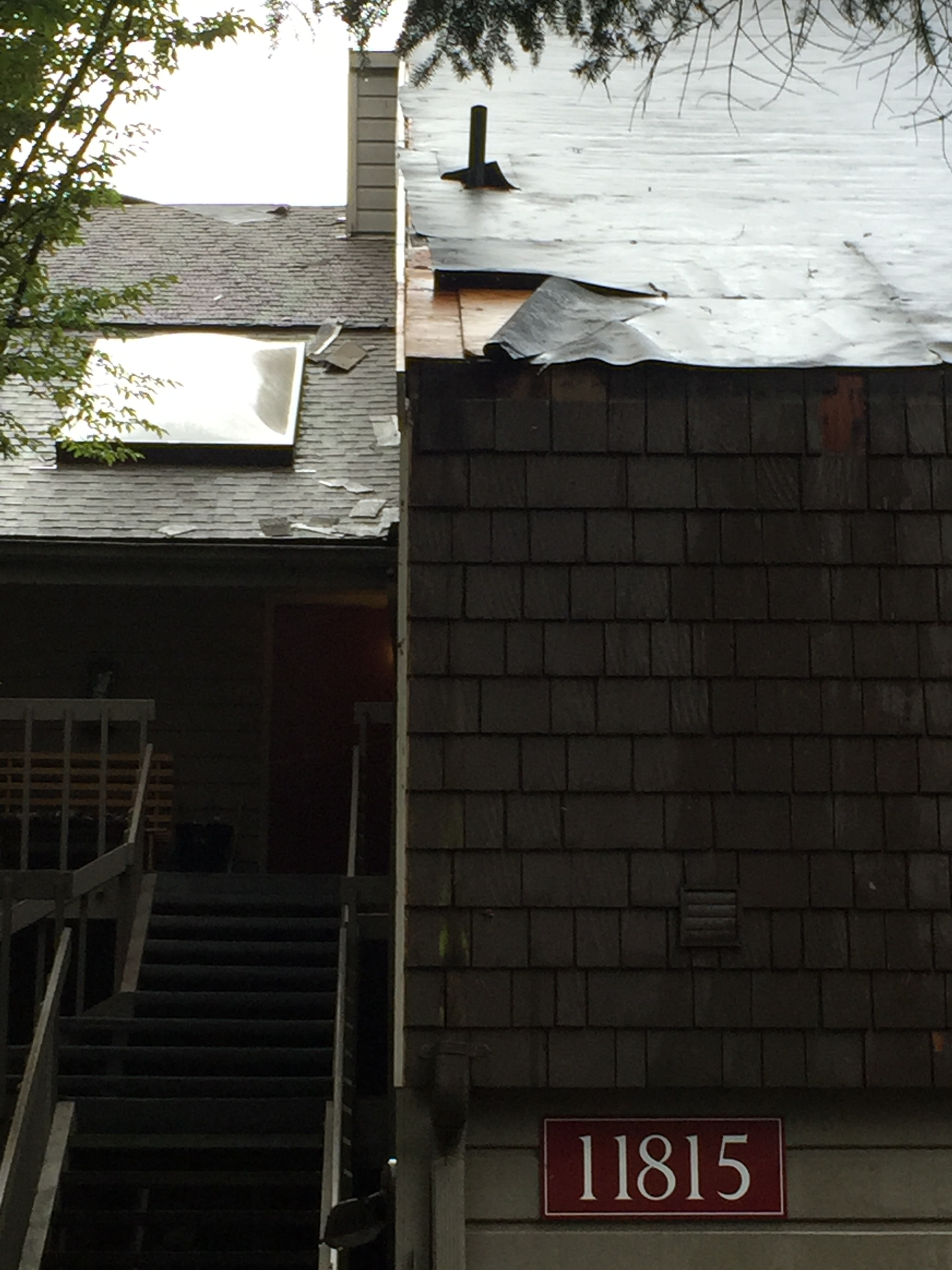My condo was one of too many that sustained water damage from this weekend’s rain.  The damage was the result of short-sighted and poorly managed work done by the roofing company that cut & run a couple weeks ago.